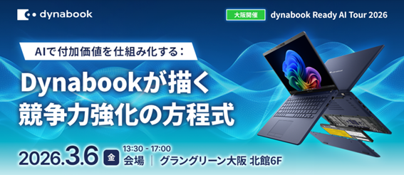 Dynabook株式会社主催、日本マイクロソフト株式会社共催において2026年3月6日(金)に開催されるセミナー「AIで付加価値を仕組み化する:Dynabookが描く競争力強化の方程式」に弊社CAIOの上田雄登が登壇いたします。